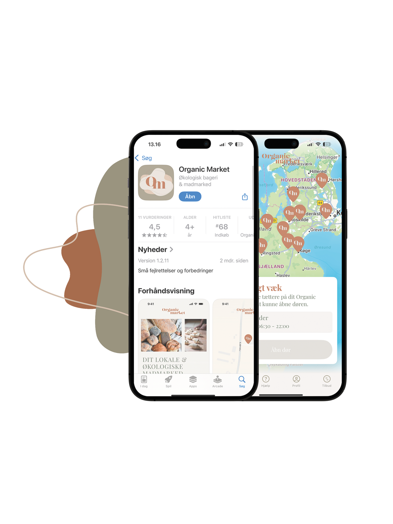 Åben døren til dit lokale Organic Market og et væld af lækre økologiske varer via appen.