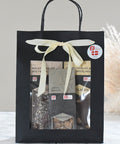 Den sorte gavepose med vindue og bånd gør den klar til at give videre – ingen ekstra indpakning nødvendig.